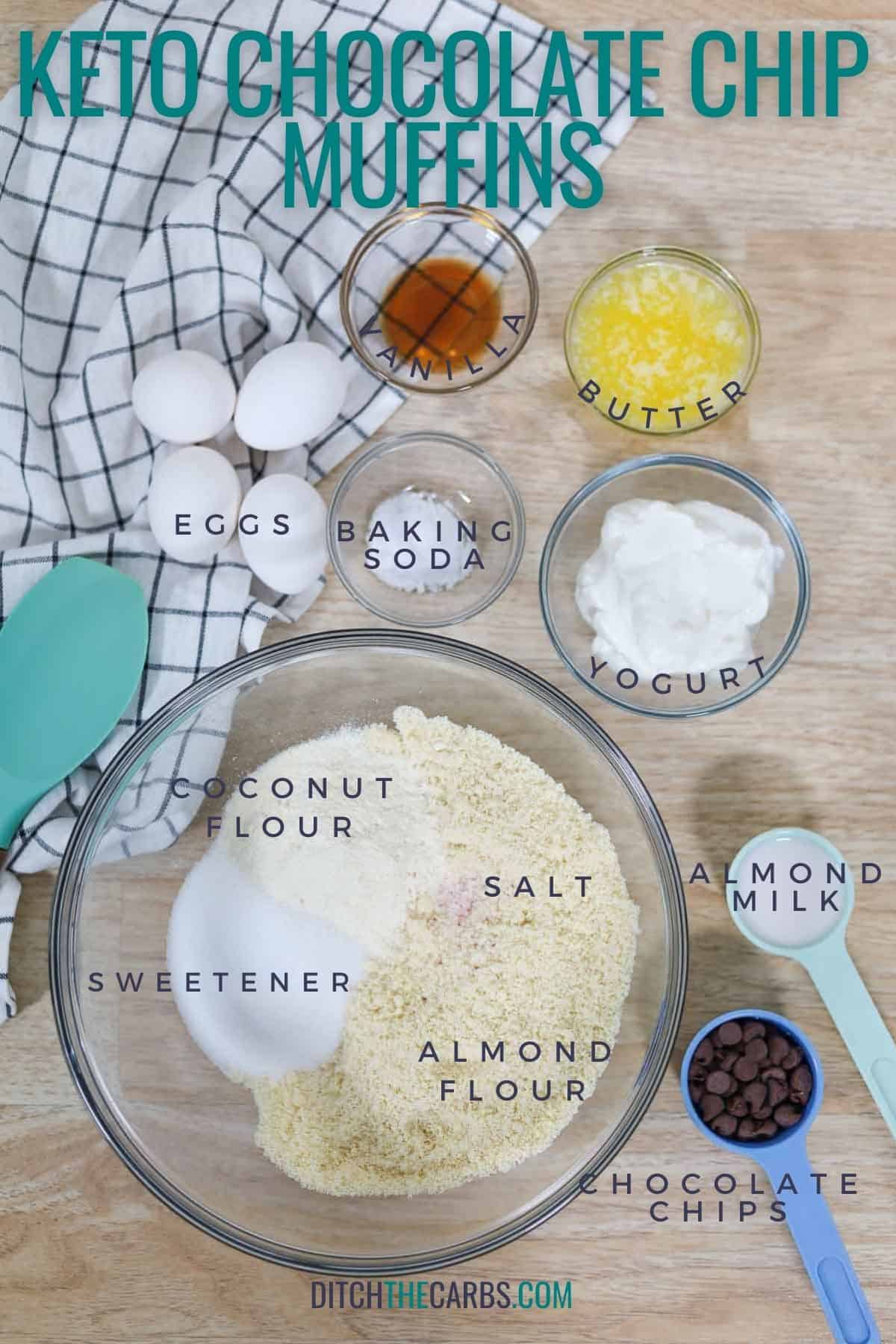 The ingredients used in this keto chocolate chip muffin recipe are specifically chosen to fit a low-carb, high-fat diet.