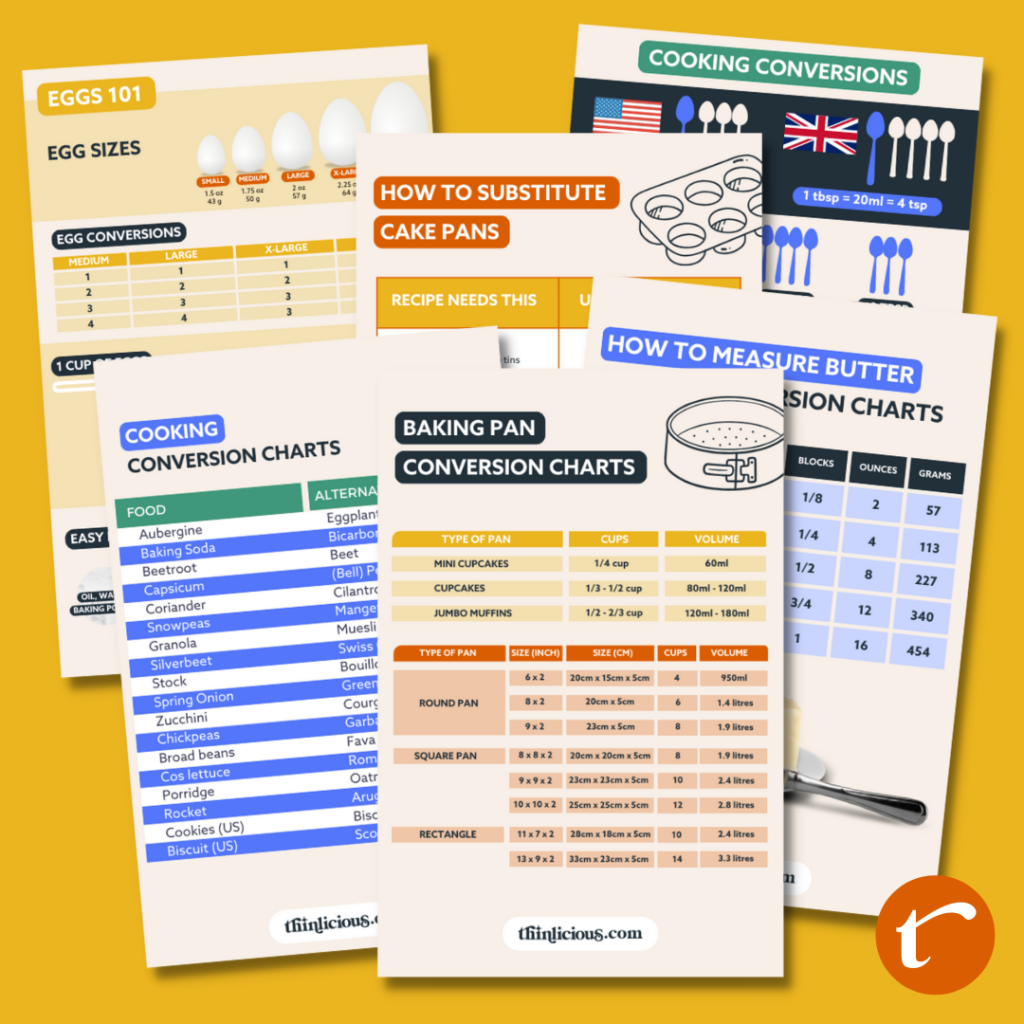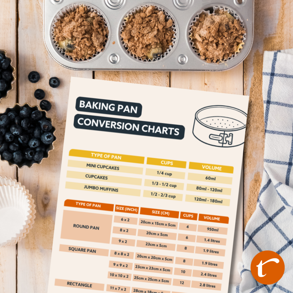 The cooking conversion charts show you how to convert metric to standard, how to convert Celcius to Fahrenheit and how many ml are in standard cups.